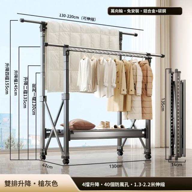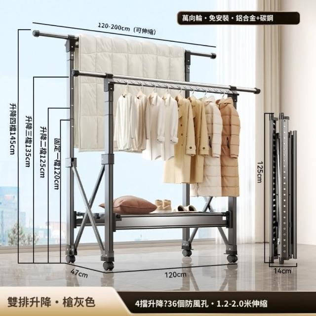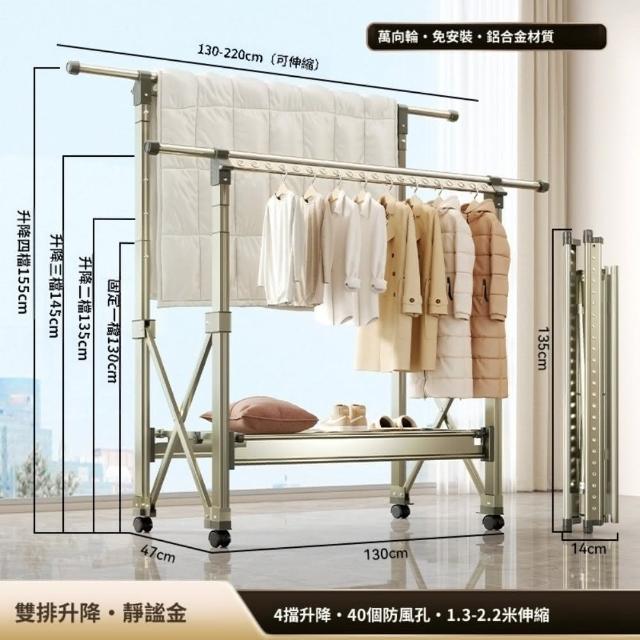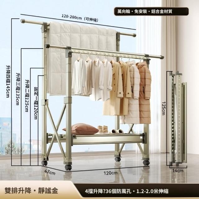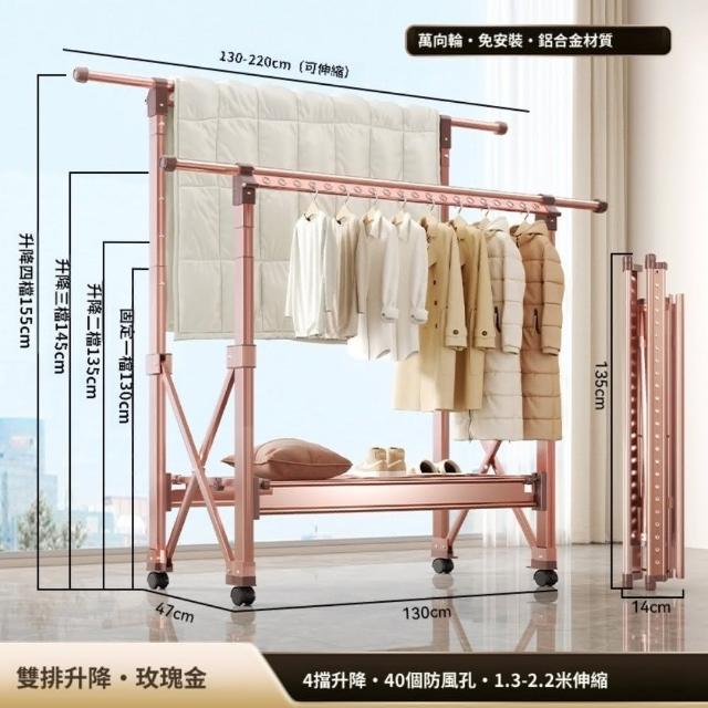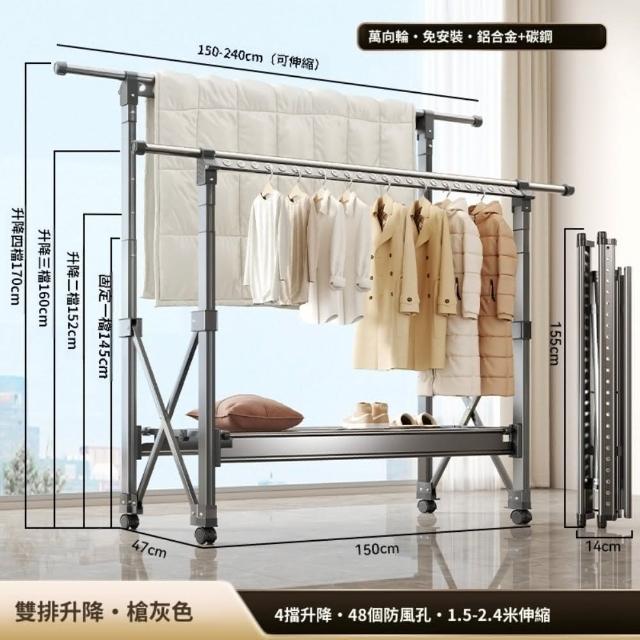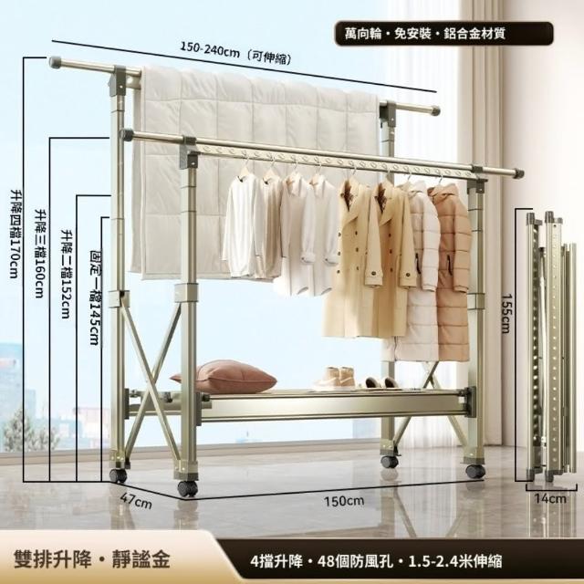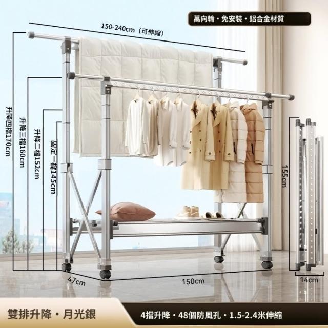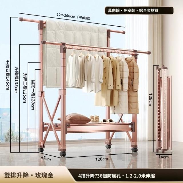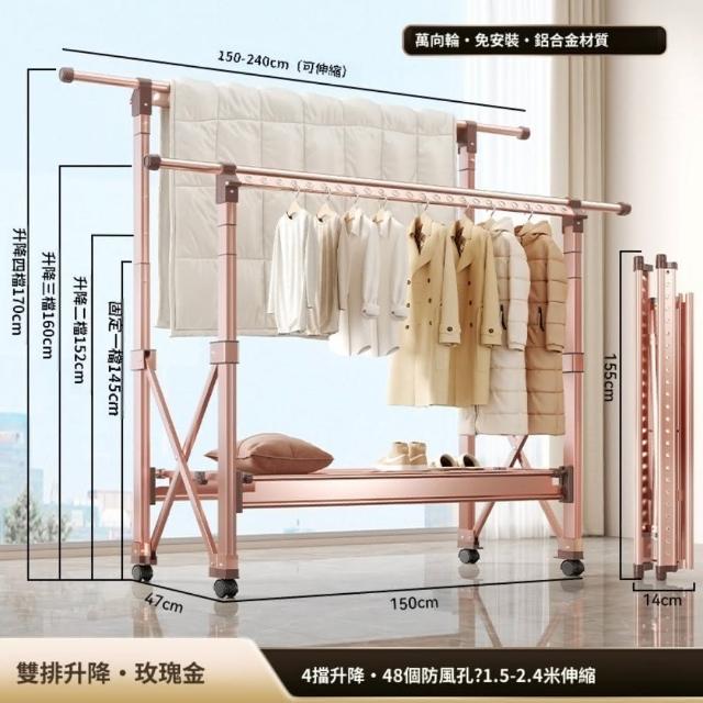 JU JIA JIA 居家家家用鋁合金升降折疊落地晾衣架 陽台涼曬掛衣架