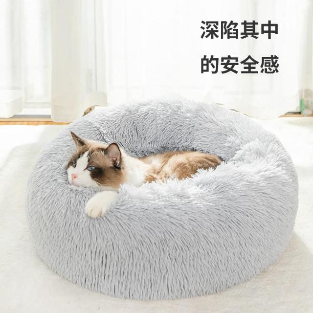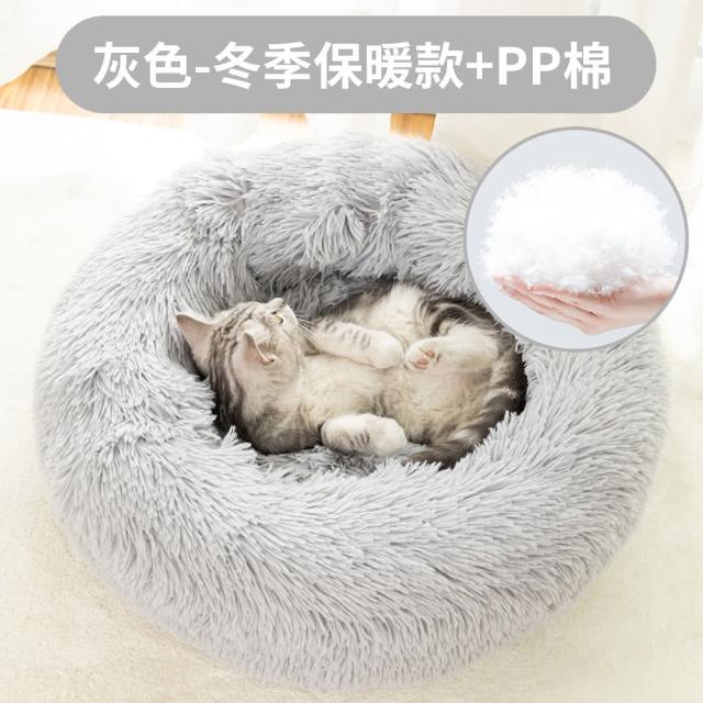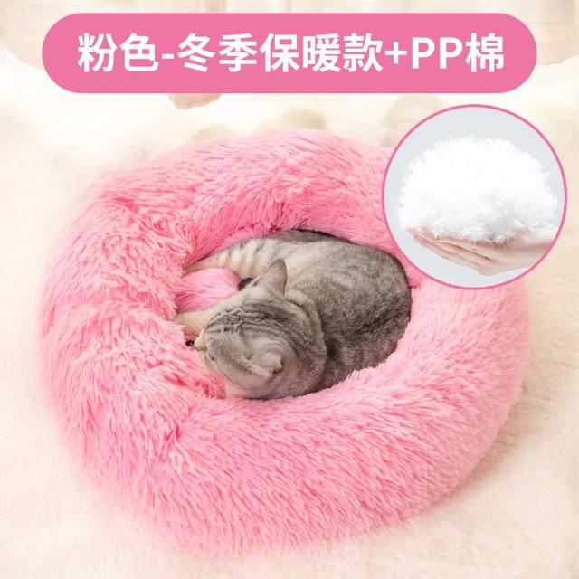 JU JIA JIA 居家家寵物貓咪冬季保暖四季通用圓形長毛絨底部防滑珠貓窩(貓床/寵物窩/寵物床)
