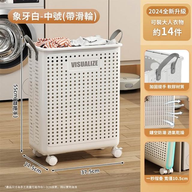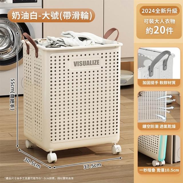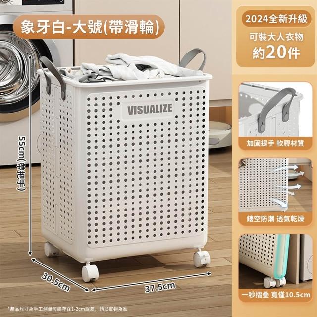 JU JIA JIA 居家家多功能家用可折疊帶滑輪大容量衣物收納髒衣簍(髒衣籃/洗衣機籃子)