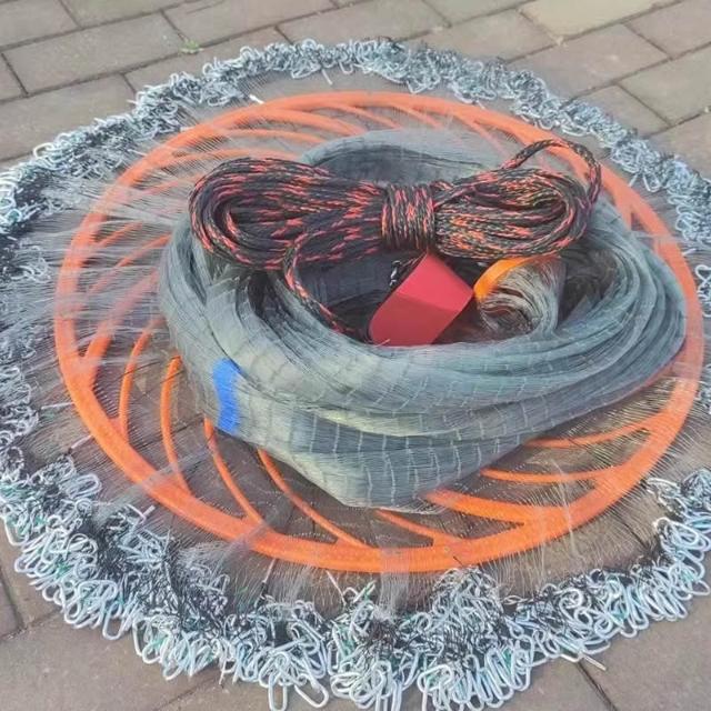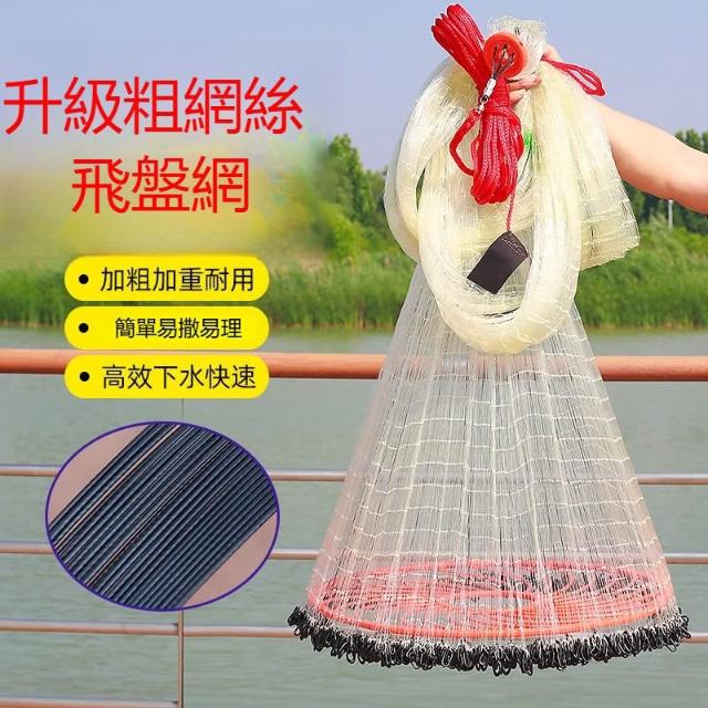 加粗線鋼拉絲飛盤手拋網手撒網捕魚網池塘河流撒魚網(手拋網/漁網/撒魚網)