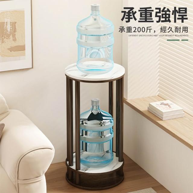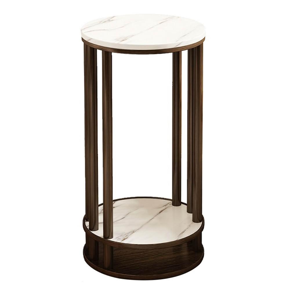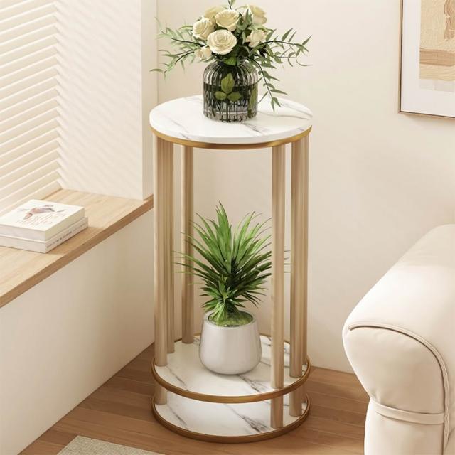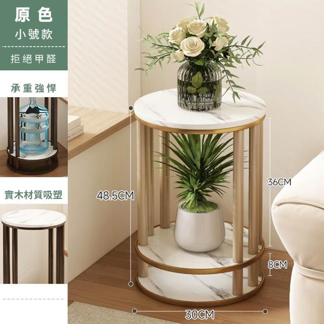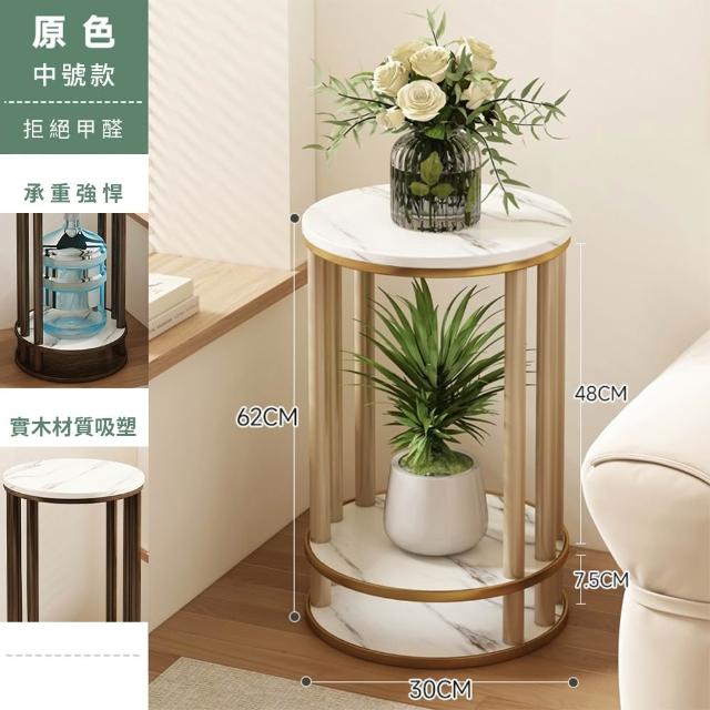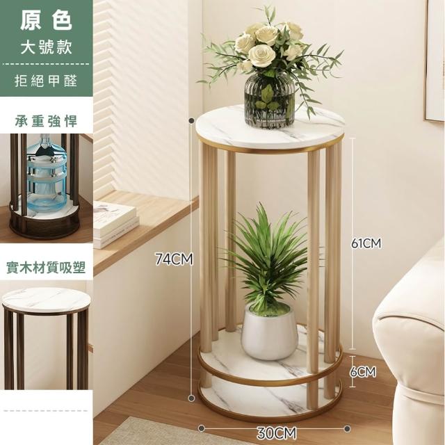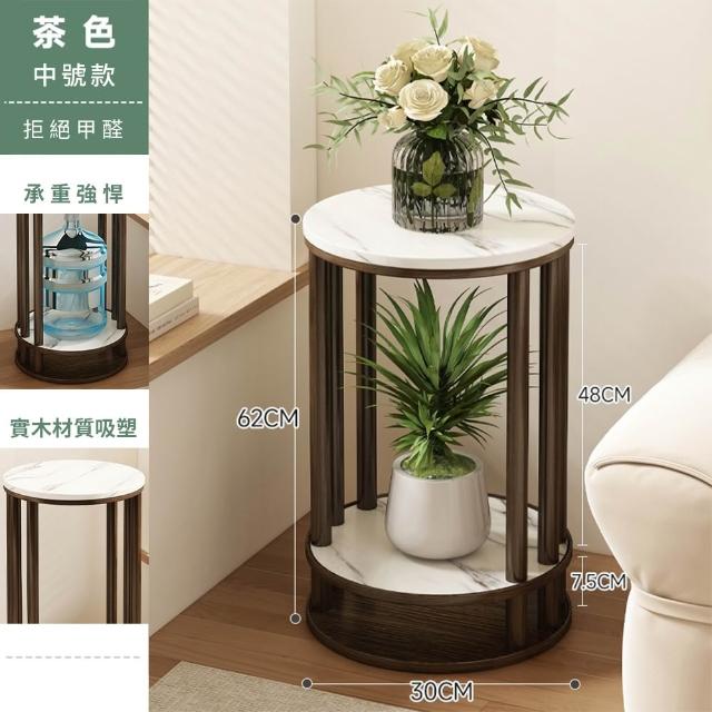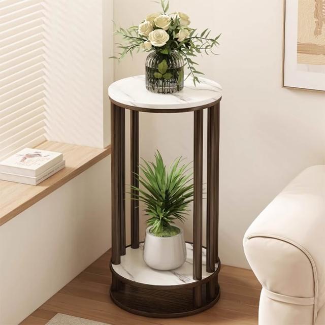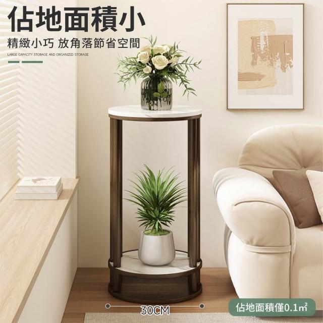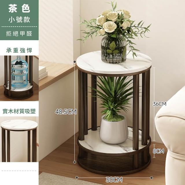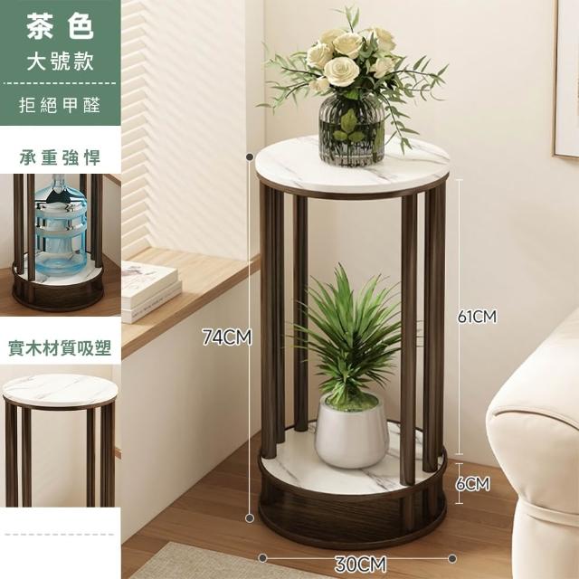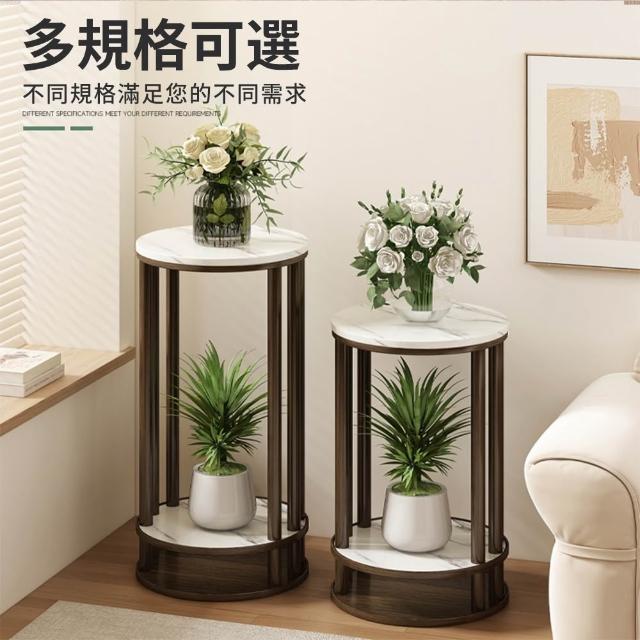 JU JIA JIA 居家家客廳陽台落地式多肉植物雙層實木岩紋圓花台架(花架/展示架/置物架/植物架)