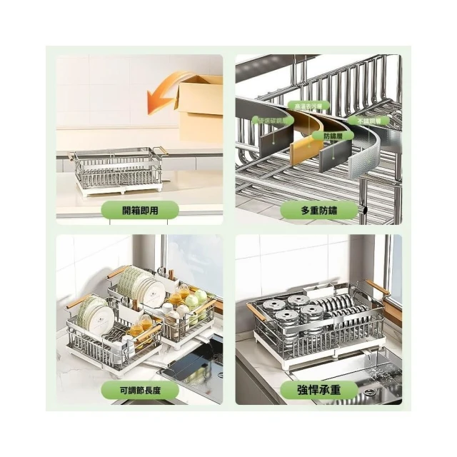 木洸304不鏽鋼廚房碗碟筷子瀝水大容量固定款瀝水架(收納架/置物架/瀝水籃/碗盤架)