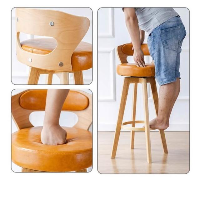 JU JIA JIA 居家家美式實木吧檯椅 旋轉復古靠背高腳凳 輕奢家用歐式咖啡廳前臺酒吧凳
