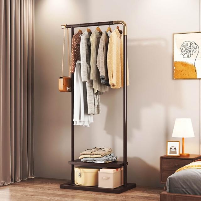 JU JIA JIA 居家家實木衣帽架落地客廳挂衣架 卧室家用落地立式簡約挂衣桿 多功能掛衣架可移動衣帽架