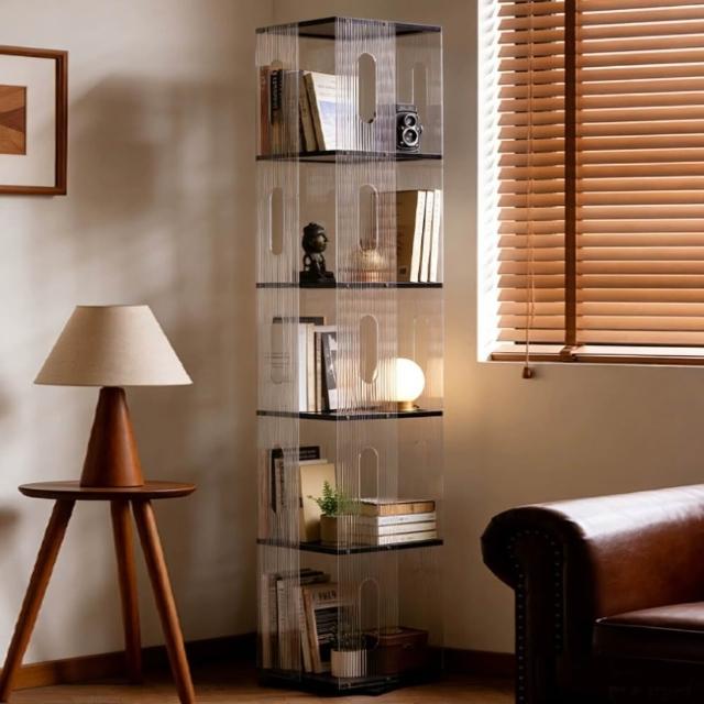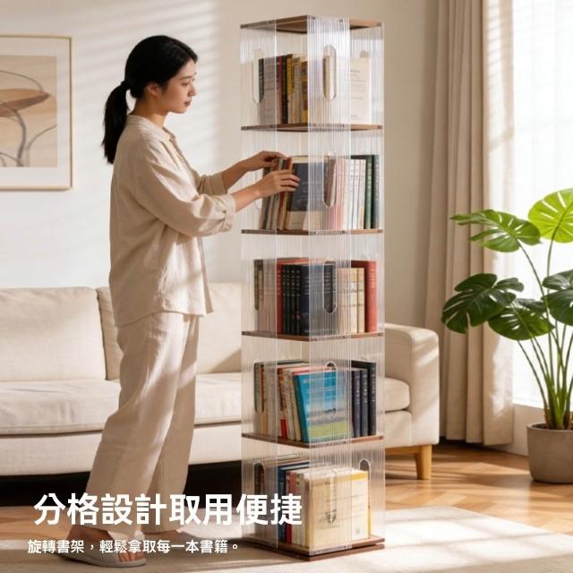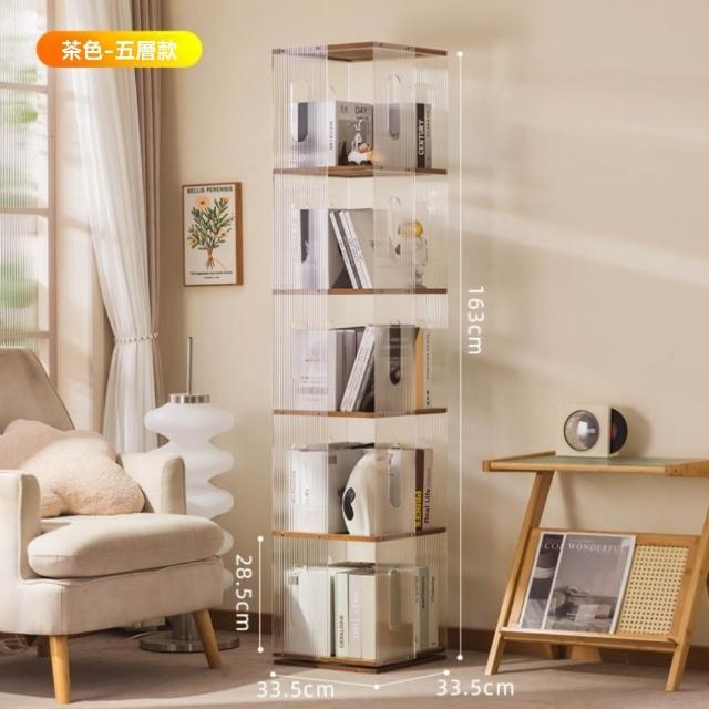 JU JIA JIA 居家家33*33*163cm復古風書架 中古旋轉落地書架 牆角置物架 拐角展示櫃 收納櫃 儲物轉角書櫃