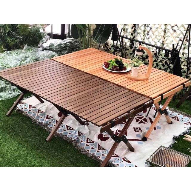 森之露 LUYING-櫸木蛋捲桌 120cm ( 蛋捲桌 木捲桌 露營桌 櫸木桌 大桌 桌子 天然木 胡桃木色 )