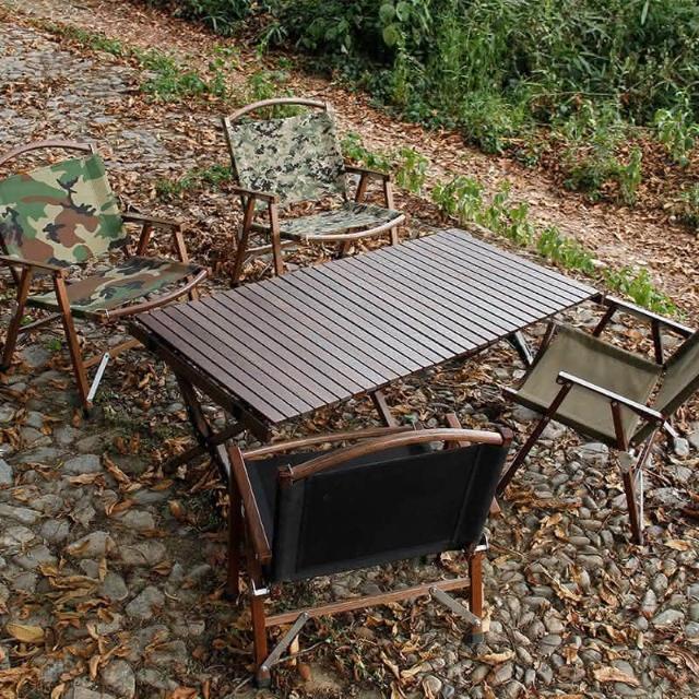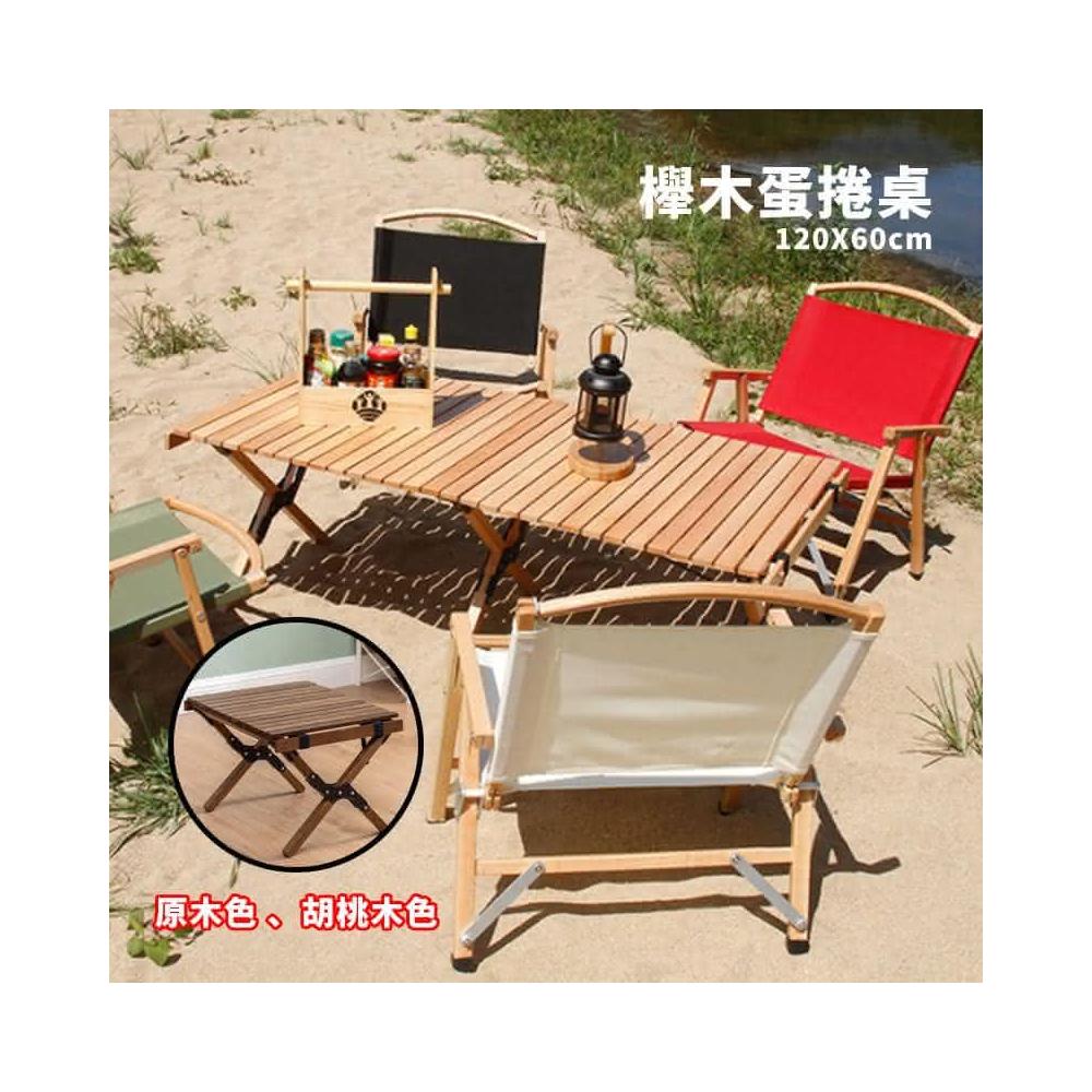森之露 LUYING-櫸木蛋捲桌 120cm ( 蛋捲桌 木捲桌 露營桌 櫸木桌 大桌 桌子 天然木 胡桃木色 )
