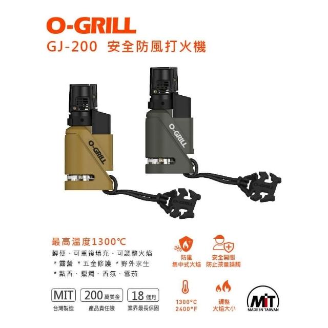 O-Grill安全防風打火機-沙綠2入組/GJ-200 (重複填充瓦斯 MIT 保固18個月)