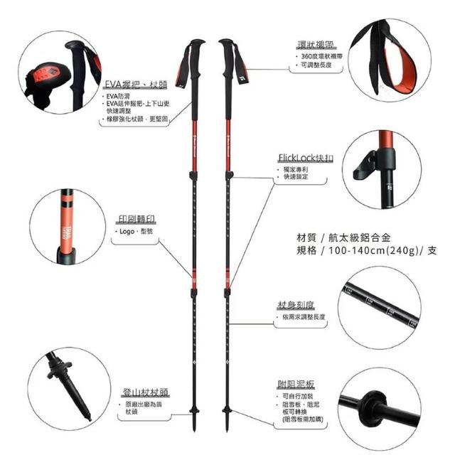 Black DiamondTrail 航太級鋁合金伸縮式登山杖 男女 登山杖 伸縮式 爬山 鋁合金 愛露愛玩