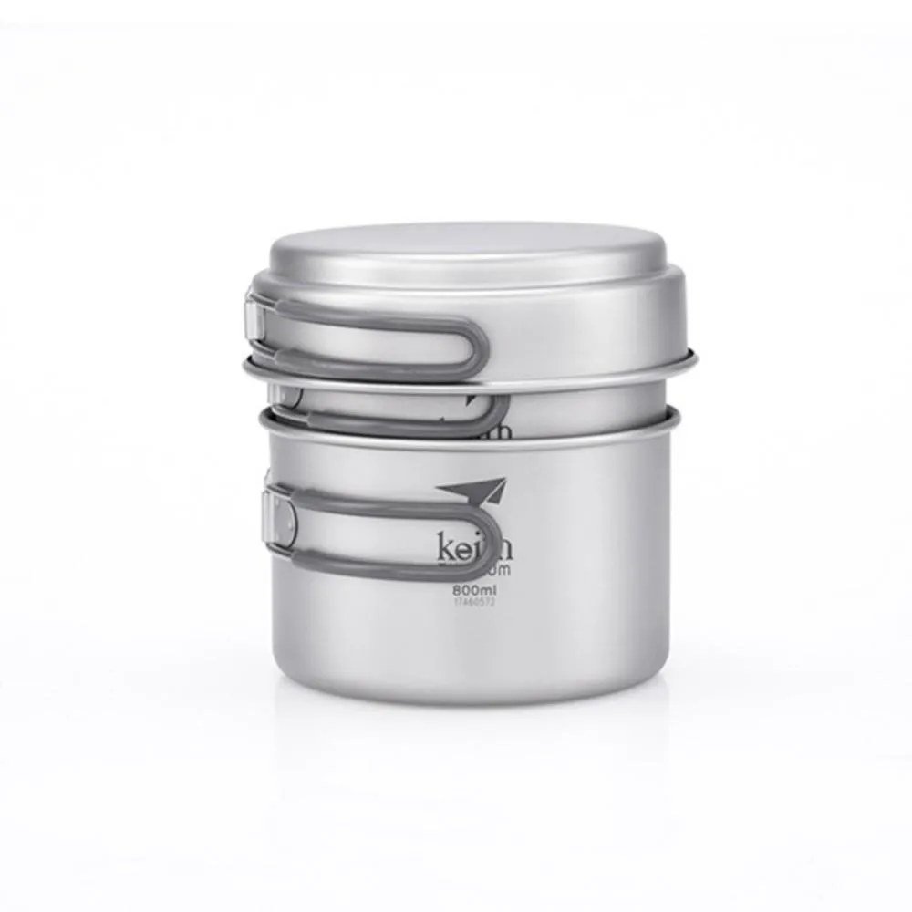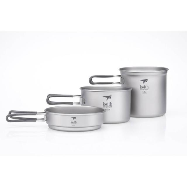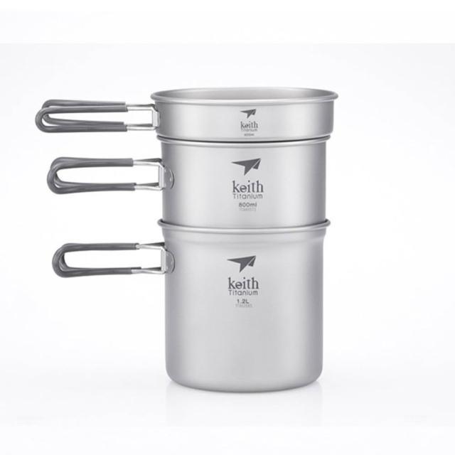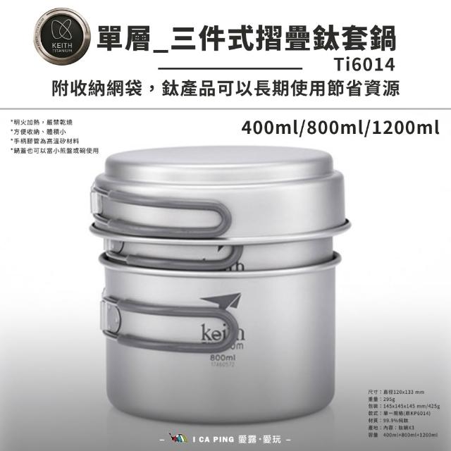 Keith鎧斯 單層_三件式摺疊鈦套鍋 400ml+800ml+1200ml / Ti6014 附收納網袋 戶外 露營 鍋具 野炊