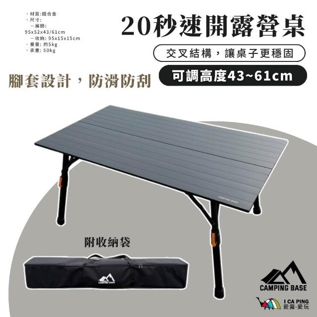 《CAMPING BASE》20秒速開露營桌 鋁合金桌 蛋捲桌 附收納袋 戶外 露營 桌子 露營桌 愛露愛玩