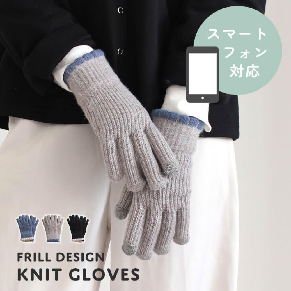 YOLI 日本代購 日本 荷葉滾邊保暖手套 保暖手套 冬天手套 可觸控 聖誕禮物 禮物
