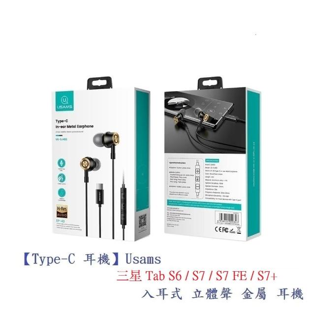 Type-C 耳機 Usams 適用 三星 Tab S6 / S7 / S7 FE / S7+入耳式 DAC 立體聲 金屬DAC 入耳式 耳機