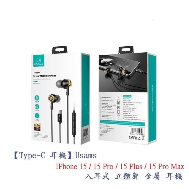Type-C 耳機 Usams 適用 IPhone 15 16 17 Plus Pro Max Air 入耳式 金屬