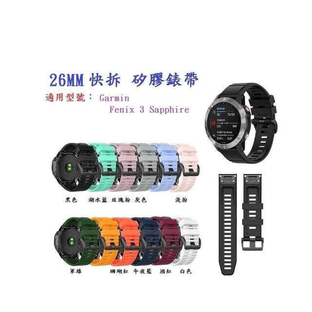 矽膠錶帶 適用 Garmin Fenix 3 / 3 HR Sapphire 快拆 快扣 錶帶寬度 26mm錶帶 替換帶 快拆