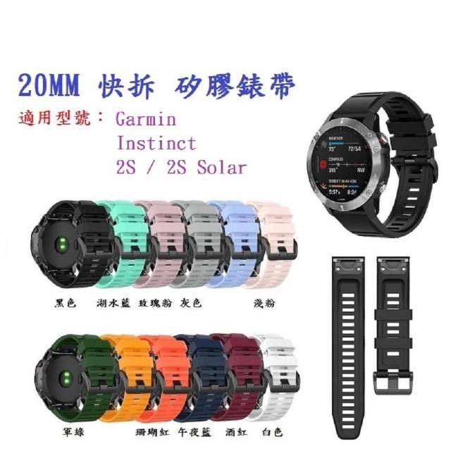 矽膠錶帶 適用 Garmin Instinct 2S / 2S Solar 快拆 快扣 錶帶寬度 20mm錶帶 替換帶 快拆