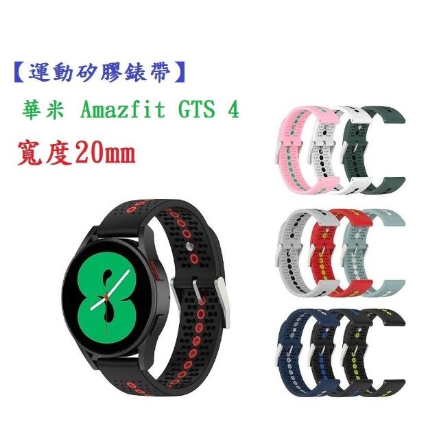 運動矽膠錶帶 適用 華米 Amazfit GTS 4 錶帶寬度20mm 雙色 透氣 錶扣式腕帶錶帶 替換帶