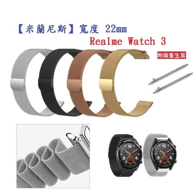 米蘭尼斯 適用 Realme watch 3 錶帶寬度22mm手錶 磁吸 金屬 錶帶錶帶 替換帶