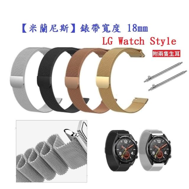 米蘭尼斯 適用 LG Watch Style 錶帶寬度18mm手錶 磁吸 不鏽鋼 金屬 錶帶錶帶 替換帶