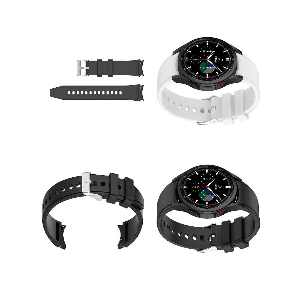 銀色圓扣矽膠錶帶 適用 三星 Galaxy Watch 5 44mm R910 R915 錶帶寬度20mm 防刮錶帶 替換帶