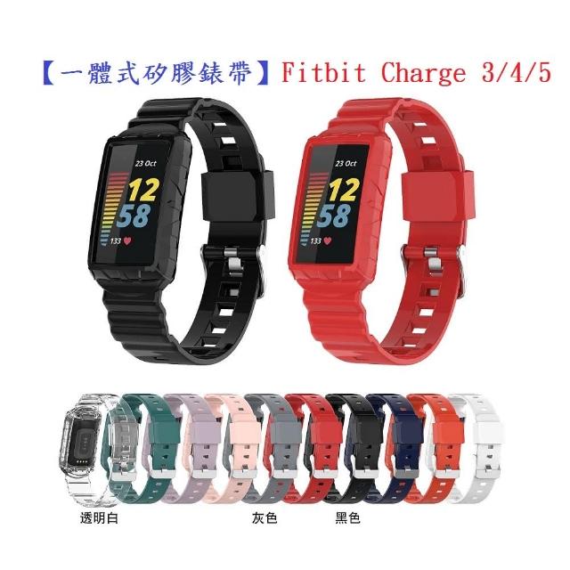一體式矽膠錶帶 適用 Fitbit Charge 3 4 5 手環 鎧甲 錶帶+保護殼 防摔 運動腕帶 替換帶
