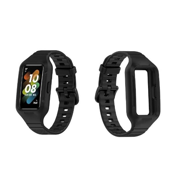 一體式矽膠錶帶 適用 榮耀 huawei 華為手環 Band 6 7 8 9 10 鎧甲 錶帶+保護殼 防摔 運動腕帶錶帶 替換帶