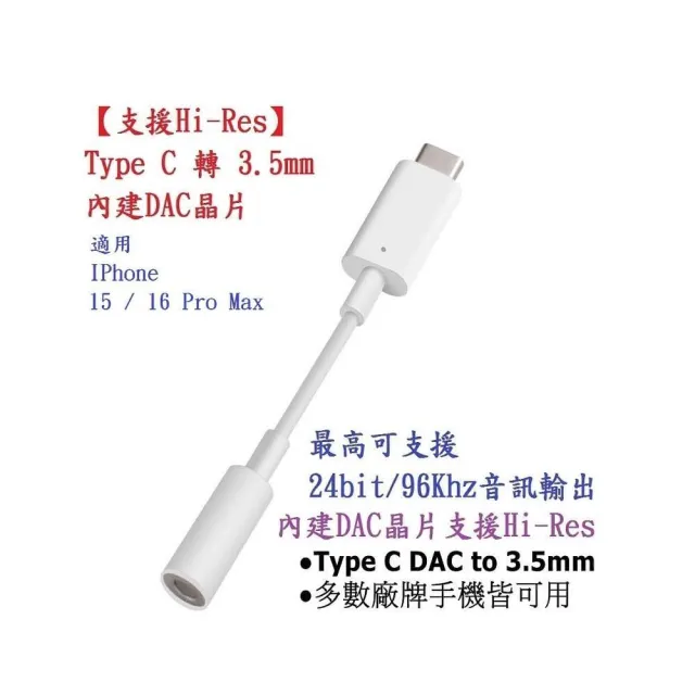 支援Hi-Res 適用 IPhone 15 16 17 Pro Max Air Type C 轉 3.5mm 耳機轉接線