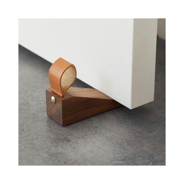 實木皮革三角門檔 木質門擋 二尺寸 門阻 阻門器 門墊 防撞墊 保護墊 緩衝墊 防關門 櫸木
