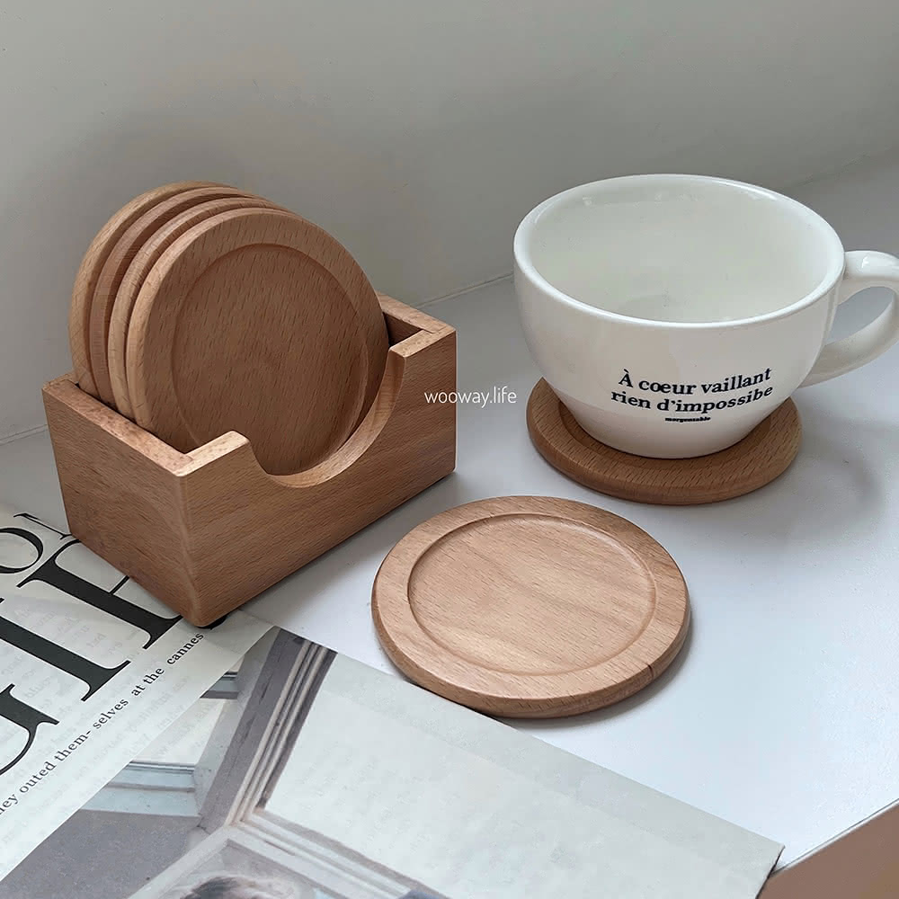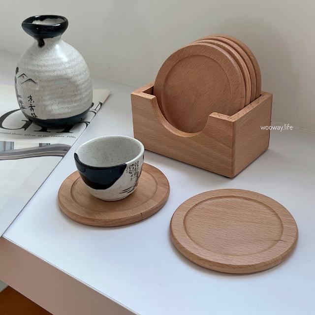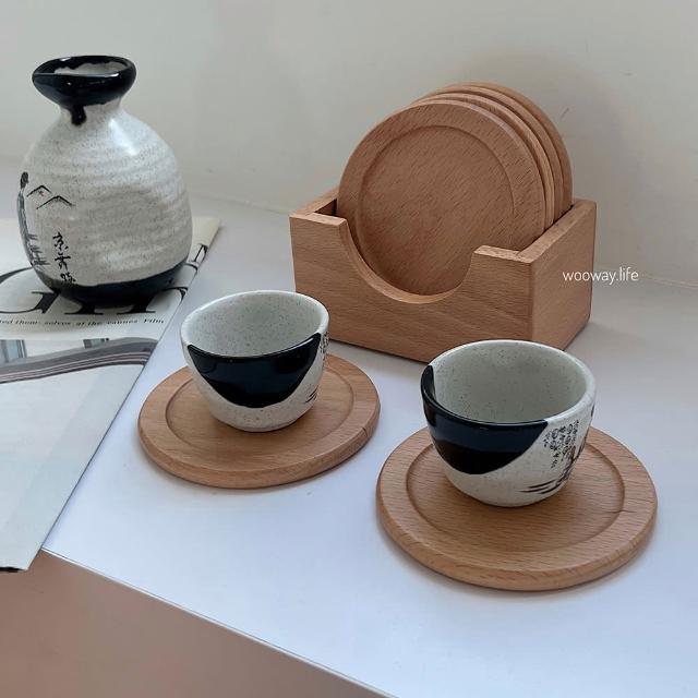 WOOWAY日式原木隔熱杯墊六件組C2-3(茶杯墊/隔熱墊/木製杯墊/居家用品)