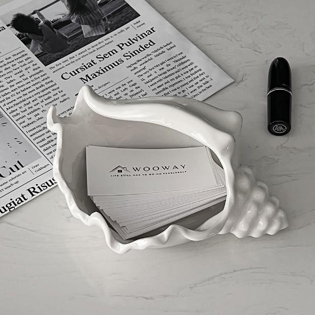 WOOWAY韓國珍珠白陶瓷貝殼收納盤B2-1(飾品盤/名片盒/零食盤/擺件/居家用品)