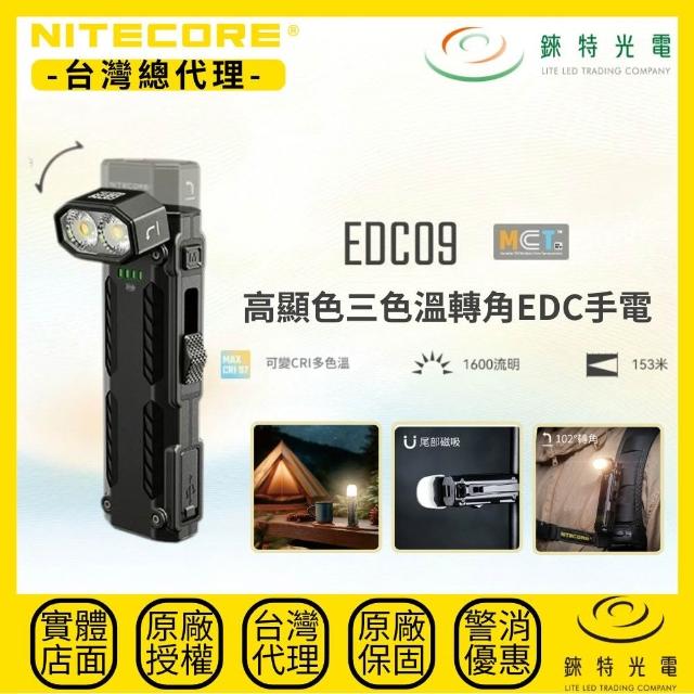 NITECORE錸特光電 EDC09 轉角EDC手電 1600流明 153米(高顯色 三色溫 尾部磁吸 附柔光罩)