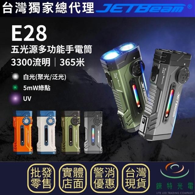 JETBeam錸特光電 E28 五光源多功能手電筒 3300流明 365米RGB UV 旋轉撥盤 磁吸 戶外