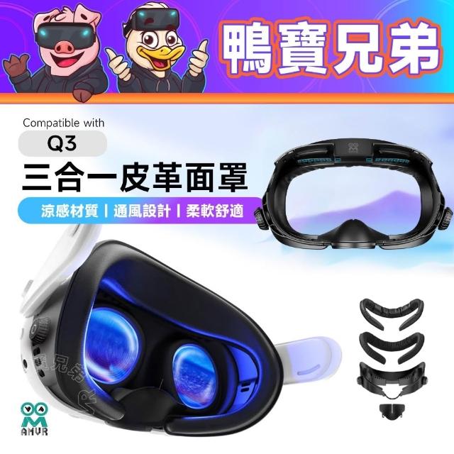 Meta Quest現貨 AMVR 三合一皮革面罩 相容於 Quest 3 轉輪調節 冰絲面罩 遮光通風防霧 三段可調 VR配件