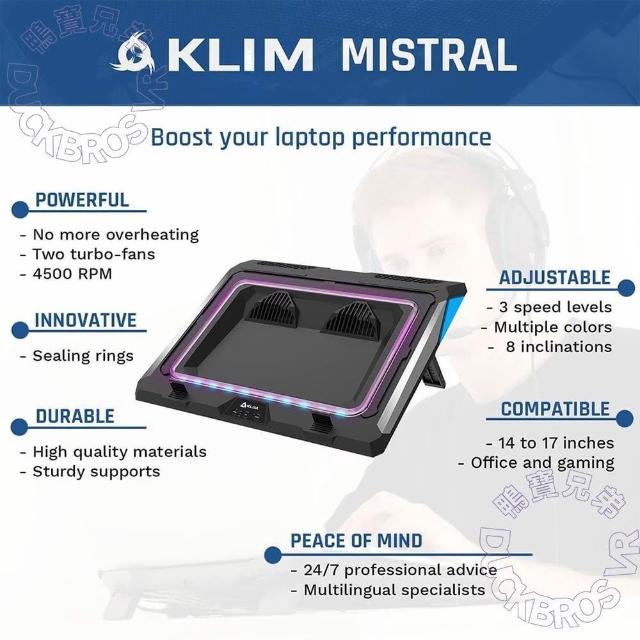 現貨 KLIM Mistral 電競筆電散熱器 RGB燈光 強力渦輪風扇 冷卻器 降溫散熱 散熱墊 筆電支架