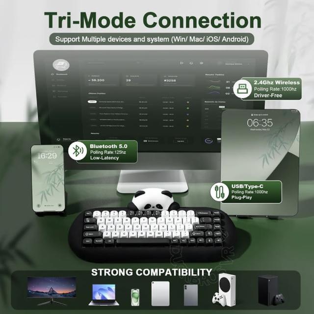 現貨 YUNZII C68 熊貓鍵盤 贈轉印貼 白色款 牛奶線性 鍵帽 RGB背光 電競 可愛