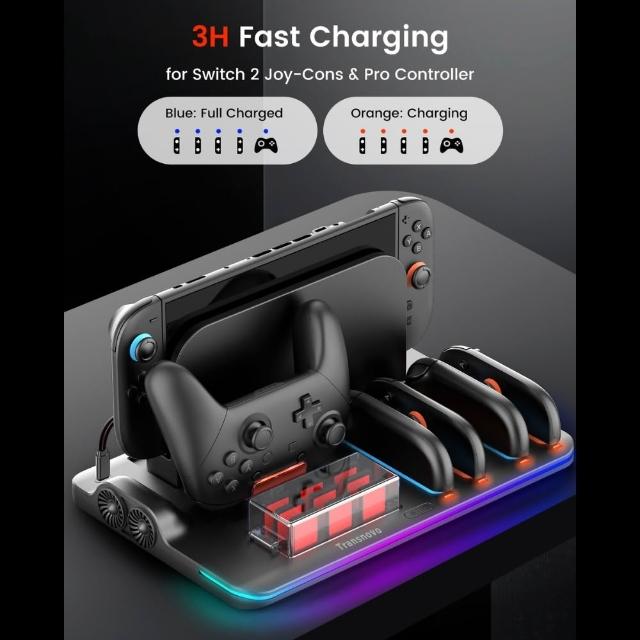 現貨 Transnovo 多功能充電收納底座|相容於 Switch 2 充電座 充電器 一站式充電 RGB 散熱