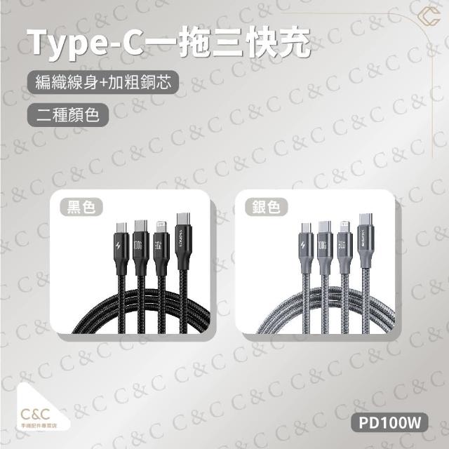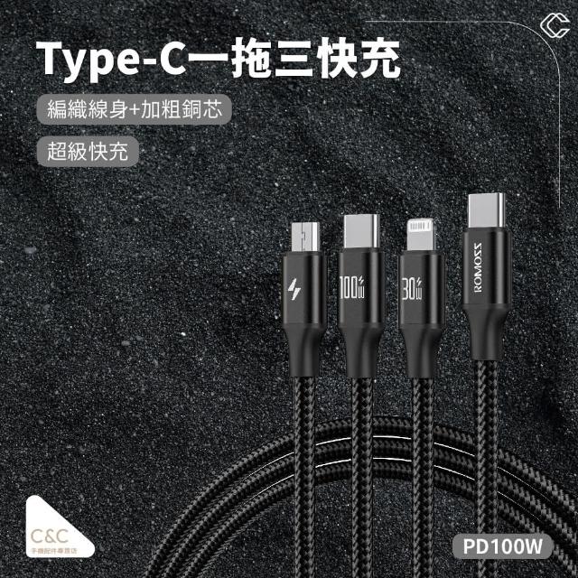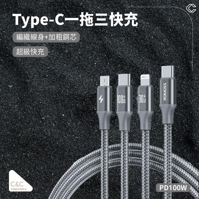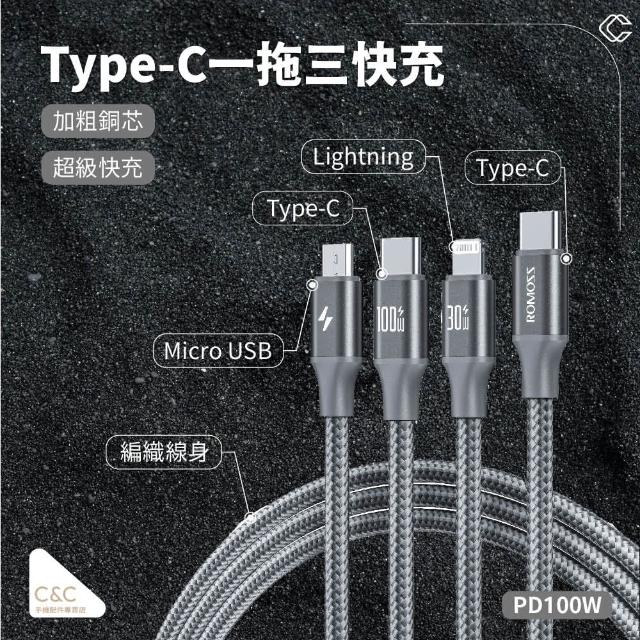 羅馬仕Type-C一拖三快充 TYPE-C頭一拖三 Type-c轉三種接口 快充線 特殊材質 不易斷 最新技術(羅馬仕Type-C一拖三快充)