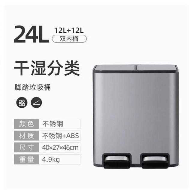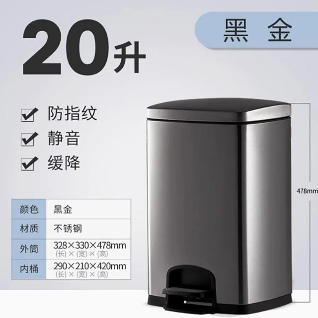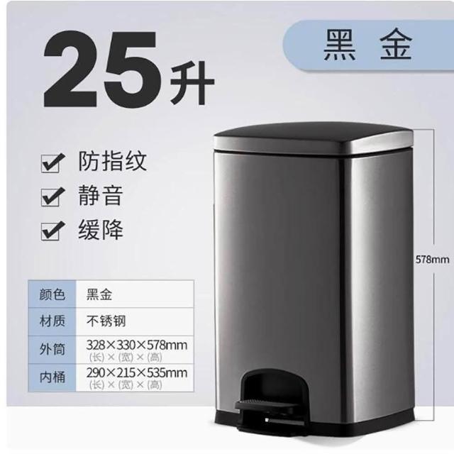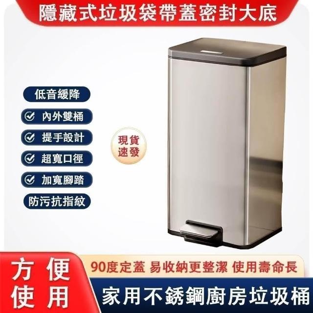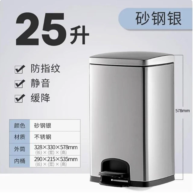 18L-21L不鏽鋼腳踏式垃圾桶 衛生間垃圾桶 靜音緩降 50L大容量自吸帶蓋垃圾桶 防汙抗指紋拉絲款 带内桶雙筒垃圾桶