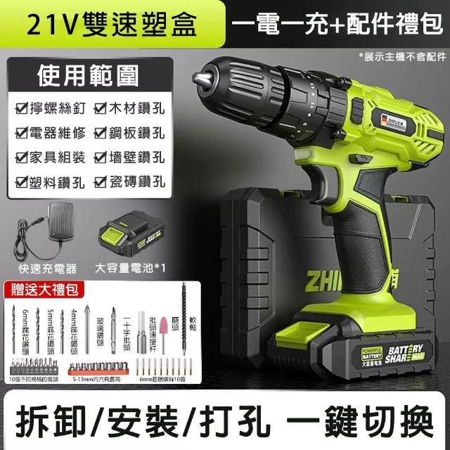 巧可巧可 現貨 電鑽 21v雙速衝擊多功能鋰電電鑽工具組 工程款強勁扭力扳手 充電式電鑽 純銅電機