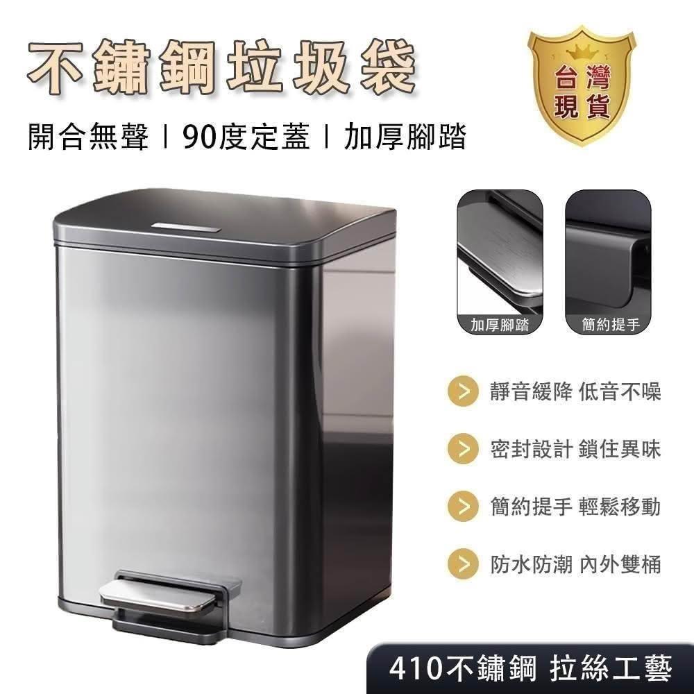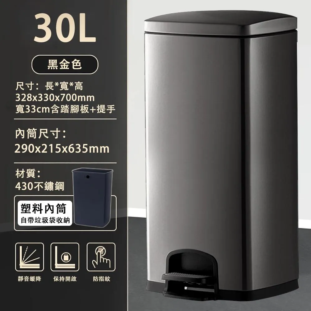 巧可巧可 現貨 13L-30L-不鏽鋼腳踏式垃圾桶 防指紋鏡面款垃圾桶 自吸帶蓋带内桶筒垃圾桶 超大容量 靜音緩降垃圾桶