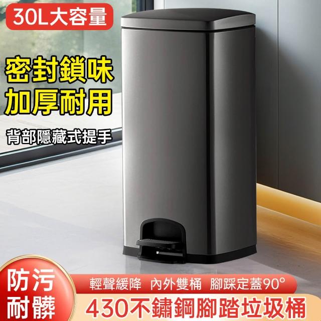 巧可巧可 現貨 13L-30L-不鏽鋼腳踏式垃圾桶 防指紋鏡面款垃圾桶 自吸帶蓋带内桶筒垃圾桶 超大容量 靜音緩降垃圾桶