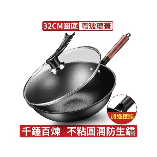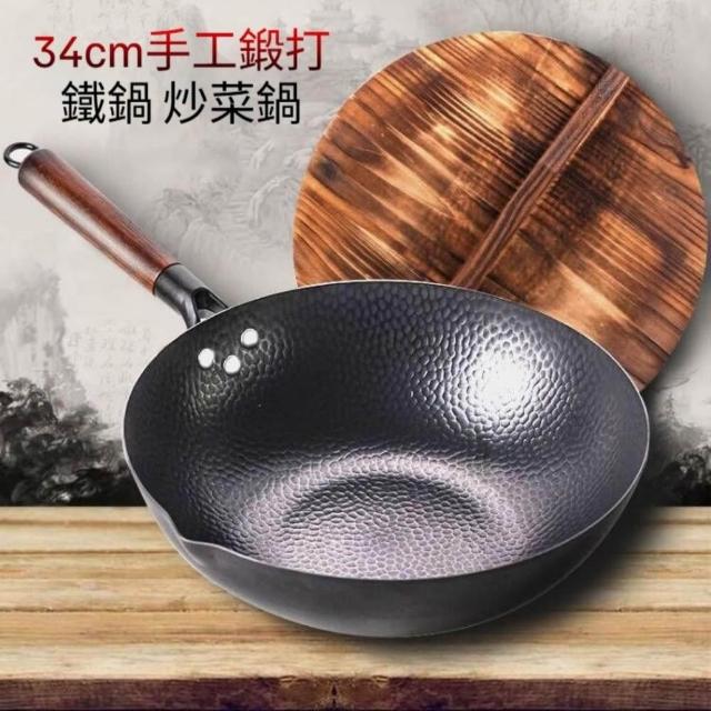 巧可巧可 現貨 無塗層平底鍋 不粘炒菜鍋 32-36cm大尺寸不沾鍋 炒菜鍋 平煎鍋 通用鍛打純鐵鍋