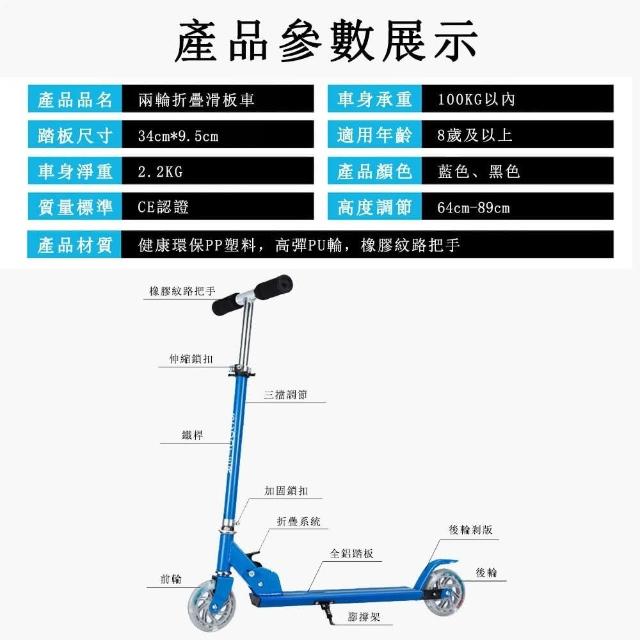 平衡車 兩輪兒童車 鋁合金滑板車 升降折疊滑步車 腳踏滑板車(藍色滑板車 輕量滑板車 折疊代步車)