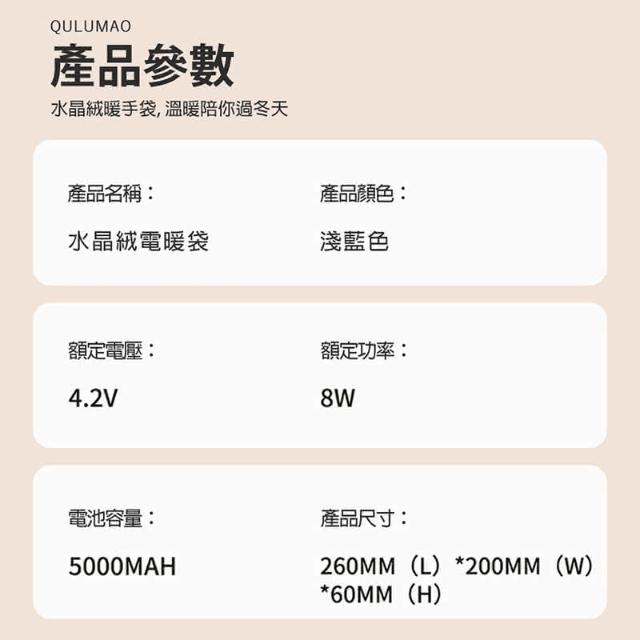 速熱持久暖手袋 無水恆溫暖手袋 電暖寶寶 水晶絨暖腹袋 3檔調節 暖手寶 持久續航 暖肚子暖腰暖背 熱水袋