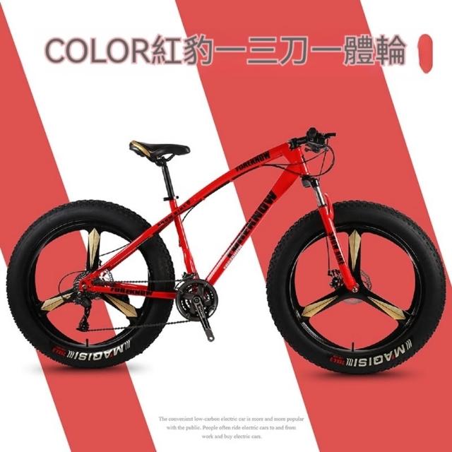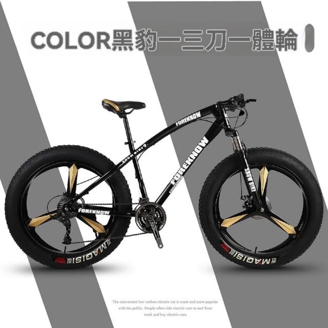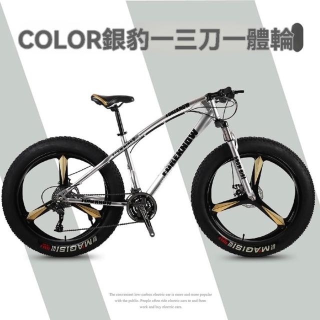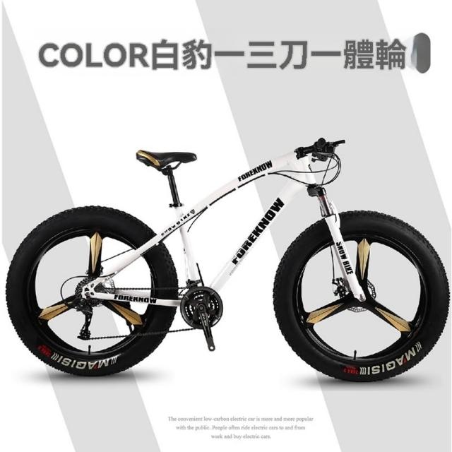 巧可巧可 24速24英寸三刀壹體輪山地自行車 成人超寬大輪胎山地車 男女學生單車 變速越野沙灘雪地車