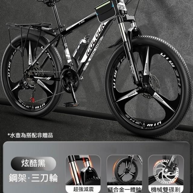 巧可巧可 24英寸三刀輪山地自行車 成人男款鎂合金避震輪 變速青少年新型省力公路單車 上班代步騎行女式自行車