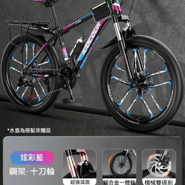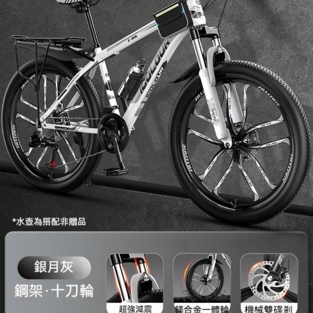 巧可巧可 24英寸十刀輪山地自行車 加厚車架 鎂合金避震輪 變速青少年新型省力公路單車 上班代步騎行男女用自行車