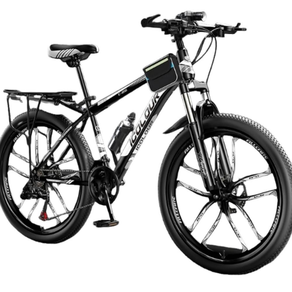 巧可巧可 24英寸十刀輪山地自行車 加厚車架 鎂合金避震輪 變速青少年新型省力公路單車 上班代步騎行男女用自行車