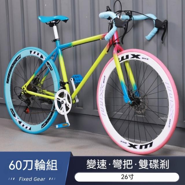 巧可巧可 26寸變速自行車 27速尊享60刀公路自行車成人學生男女實心胎超輕 彎把單車 公路賽車