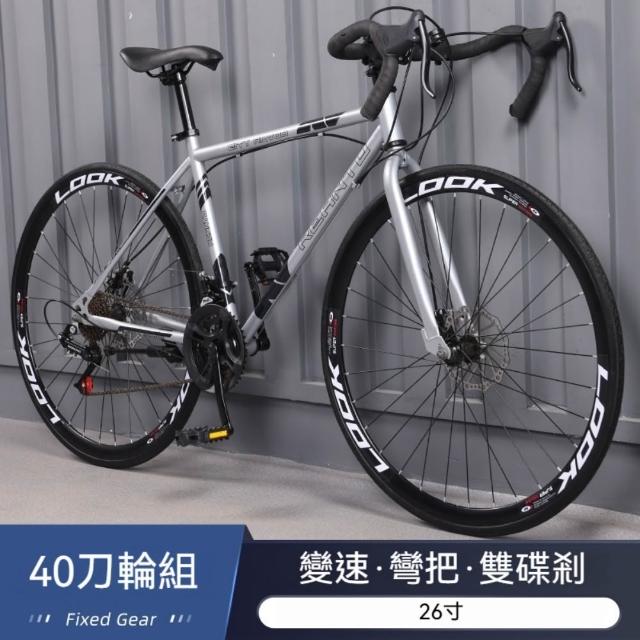 巧可巧可 26寸變速自行車 27速頂配40刀公路自行車成人學生男女實心胎超輕 彎把單車 公路賽車